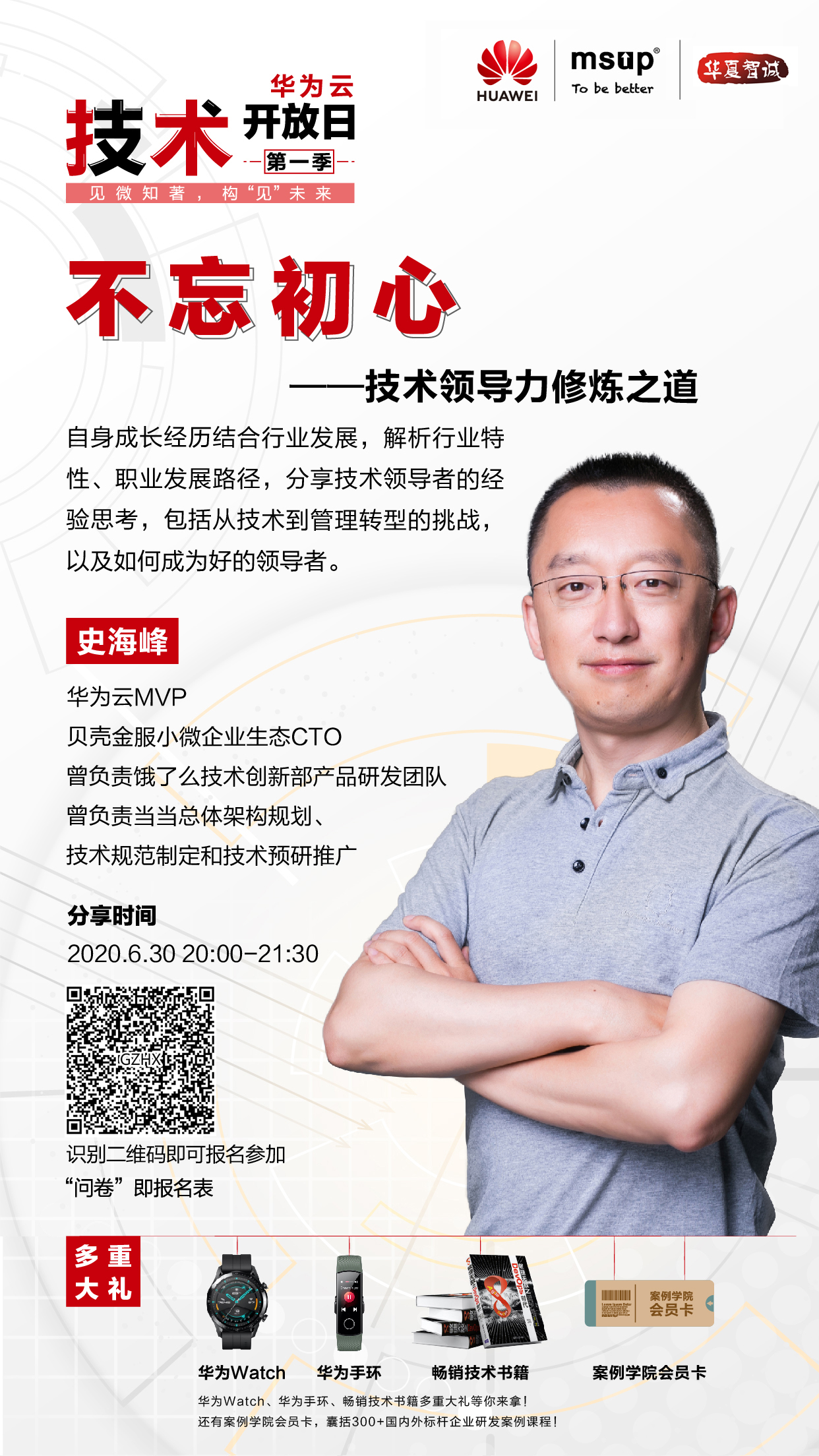 ,结合行业发展特性与职业发展路径,给同学们分享技术领导者的经验和思考,实现技术到管理转型的挑战!现场还有丰富礼品等着您。